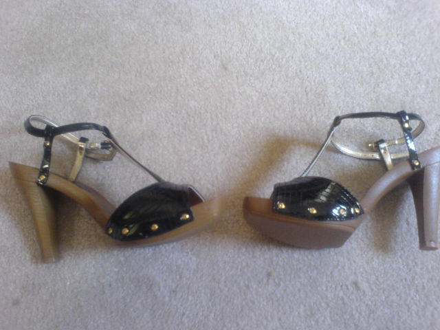 Faux Patent Leather Platform Open Toe Slingbacks Size 9