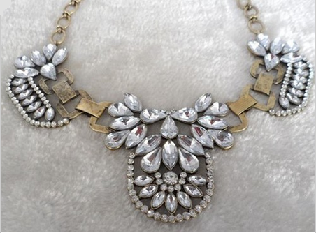 Multi Crystal Cluster Bib Statement Pendant Necklace